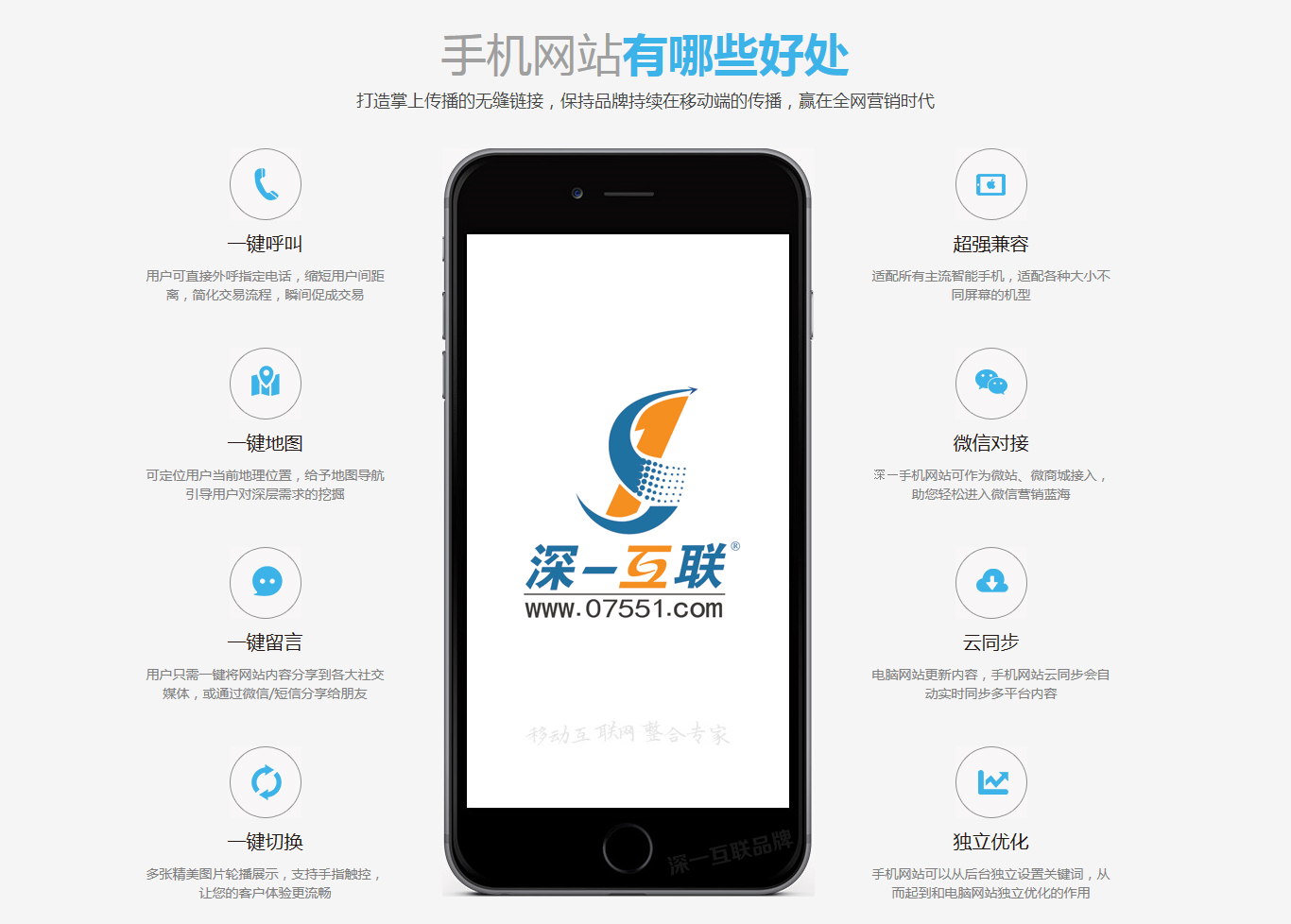 隨著各種智能手機的普及和4G網絡的推廣,移動辦公也逐漸成為各中小企業關注的話題,移動端手機網站的建設,也越來越有必要性了,建設一個手機網站需要多少錢呢?手機網站建設過程中需要注意什么呢?選擇正規有實力的公司,深一集團11年專業網站建設,行業內知名網絡公司,選擇我們,一站式服務,解決您后顧之憂。全國熱線:400-666-2014